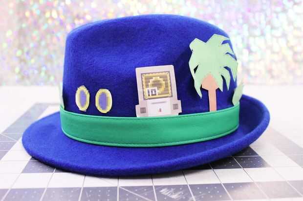 Hice la nueva banda de una tela de vinilo verde brillante (piel sintética) que añaden un contraste agradable a la textura de la lana. También terminé agregando una banda marrón más pequeño en el fondo tan junto que se asemejaría a la tierra de un nivel de sonic.