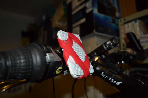 Por supuesto puede utilizar sólo dos pulseras de silicona directamente sin sostenedor de botella de agua, pero esto es mejor para la estabilidad. Mi inversión total es de sólo unos minutos de trabajo y 2,30€!