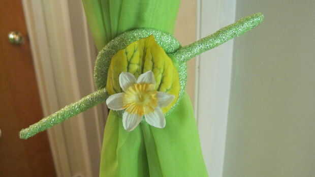 Siguiente paso es: agregar el decorativo hojas y flores! Utilicé un alambre verde fino para sujetar las flores y las hojas: primero por los pegado uno al otro, entonces sujete al círculo y el palo con la ayuda del alambre. Puede elegir la decoración permanente o uno acoplable. Usted tendrá más posibilidades de elección y cambiará la broche de la decoración (flores y hojas) como con decoraciones acoplables.
