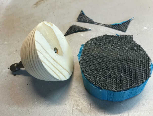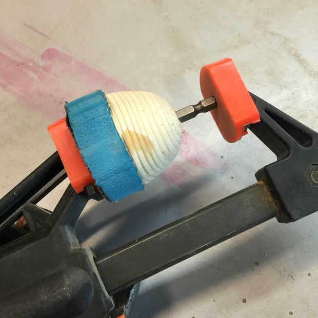 Para mantener cosas mirando más que recortar el Velcro extra de la espuma, este probablemente no se requiere pero todavía están paradas por la elección. Poner una cantidad saludable de Shoe Goo en la base de madera y la parte inferior de la almohadilla de espuma. Unta las dos piezas juntas y torcidos juntos para asegurar una cobertura uniforme. Mantener la presión la Asamblea mientras se secaba lo puse en una barra de la abrazadera con la suficiente presión para comenzar a comprimir la espuma.