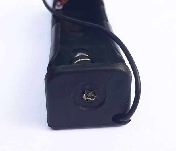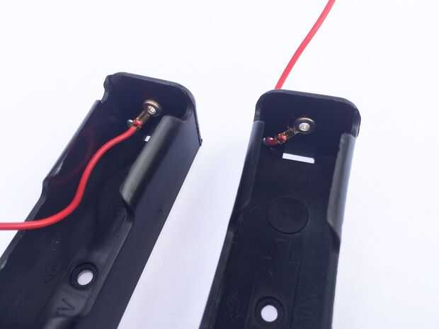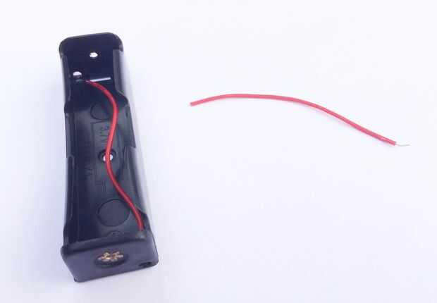 Ahora empuje el cable rojo a través del agujero en el interior del soporte de la batería. El cable rojo será el cable desde la batería hasta el circuito de protección. Mida la longitud del soporte de la batería y cortar el cable rojo a una longitud que alcanza el extremo negativo de soporte de la batería.