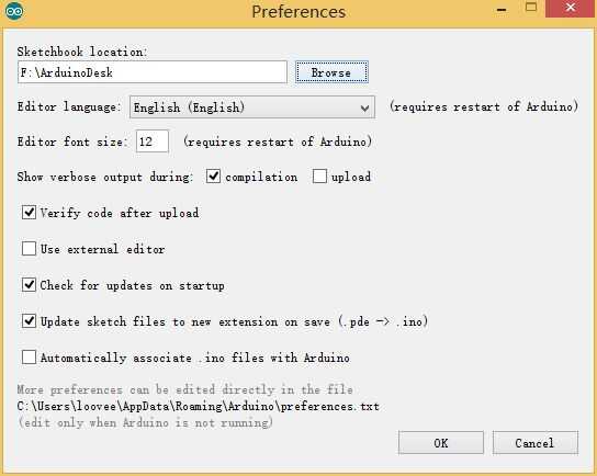 3. Abra el IDE de Arduino, haga clic en archivo > Preferencias > Ubicación de Sketchbook, busque la carpeta que habíamos mencionado arriba - ArduinoDesk-master. Haga clic en Aceptar para guardarlo.