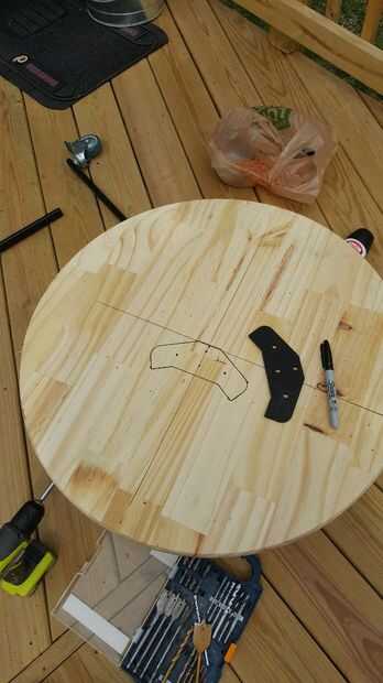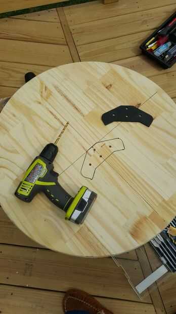 Reciclar la placa metálica de la carcasa del Wheelie de trípode y lo colocó cerca al centro. Había lo había trazado y taladrar los agujeros para los tornillos y los brazos.