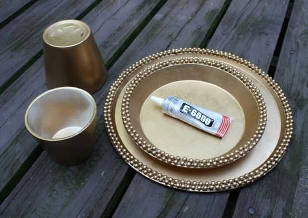 Una vez que todos sus artículos son totalmente secos está listo para ponerlos juntos. Pegue la olla mediana en el fondo de la tartera y el bote grande en la parte inferior de la cacerola de la pizza con el adhesivo de fuerza industrial. He utilizado E-600, funciona bien. Dejar seco, esto le llevará varias horas.
