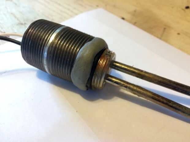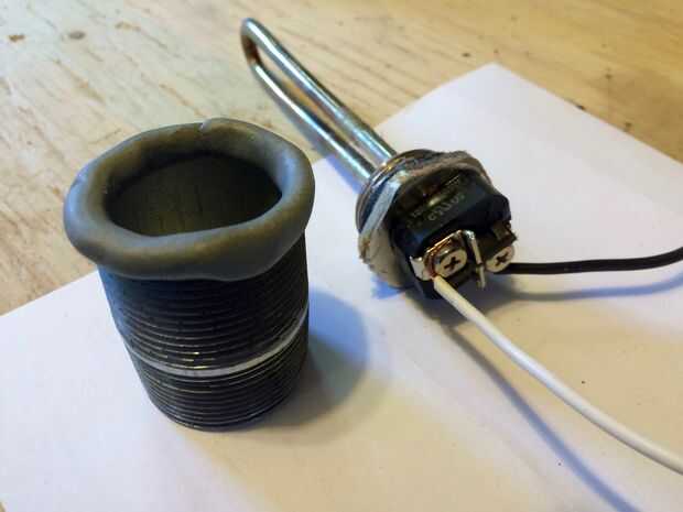 Tome un pedazo de epoxy JB Weld sobre el tamaño de una canica grande. Empezar a trabajar para mezclar los dos compuestos y activar la resina. Se queda muy flexible y fácil de trabajar durante este tiempo. Cuando rodillo mixto en una salchicha forma para caber en el labio de la tubería galvanizada. Luego tomar el elemento, colocado los cables en el tubo y presione el elemento en el JB Weld. Con el exceso del epoxy que presiona hacia fuera, utilice su pulgar y presione alrededor del exterior de la tubería y el elemento para crear un sello de prueba de agua. Esto le llevará a establecer de 1 hora y 8 horas para curar. Dejar esto de lado y podemos comenzar el corte de la caja del proyecto y el cableado.