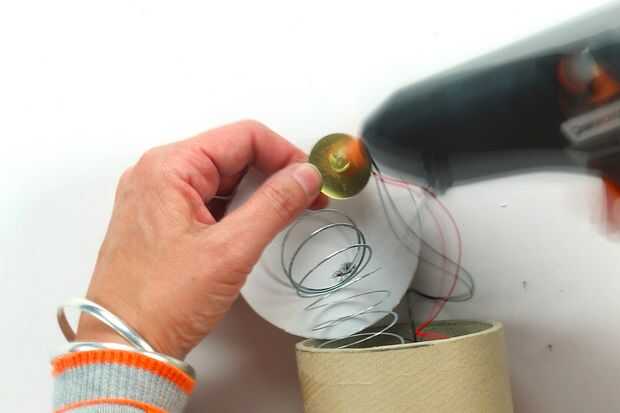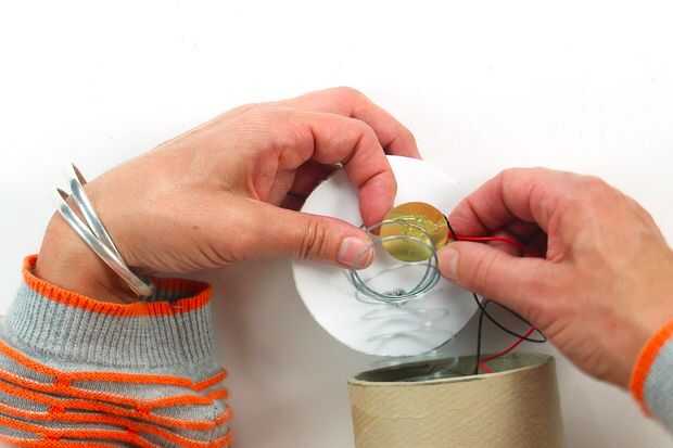 Pegar el piezo en el resorte en la parte inferior del tubo.