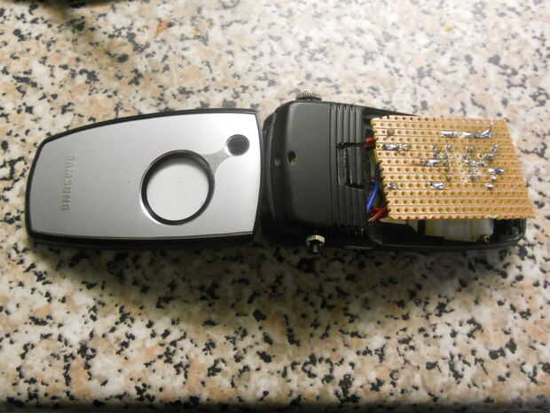 Así todo empuje dentro del teléfono y esperanza cabe allí. también si te gusta te puede poner un boton a un lado el teléfono así que si lo presionas, su en y si no su apagado. También pongo el audio jack de salida al otro lado del teléfono. simplemente perfore un pequeño agujero donde usted lo desee.