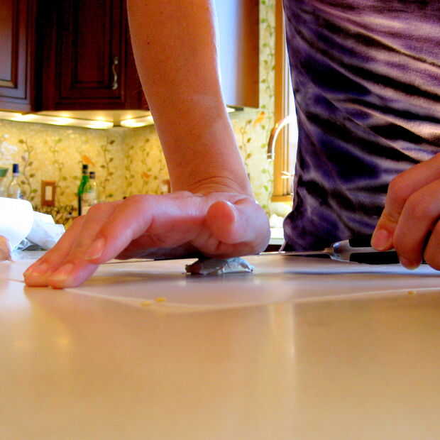 Quitar la piel externa de dientes de ajo. Yo uso la parte de atrás de un cuchillo. Coloque el diente de ajo sobre superficie dura y entonces presione suavemente con el dorso de un cuchillo. Esto ayudará a que la piel sale más fácil.