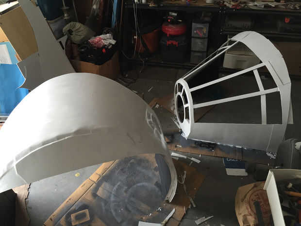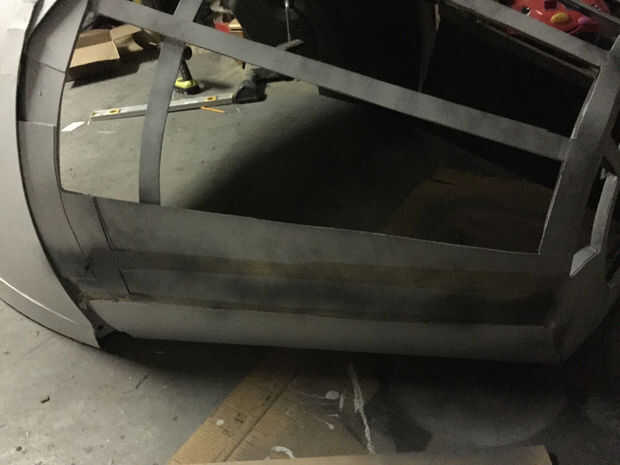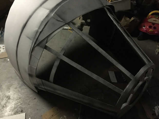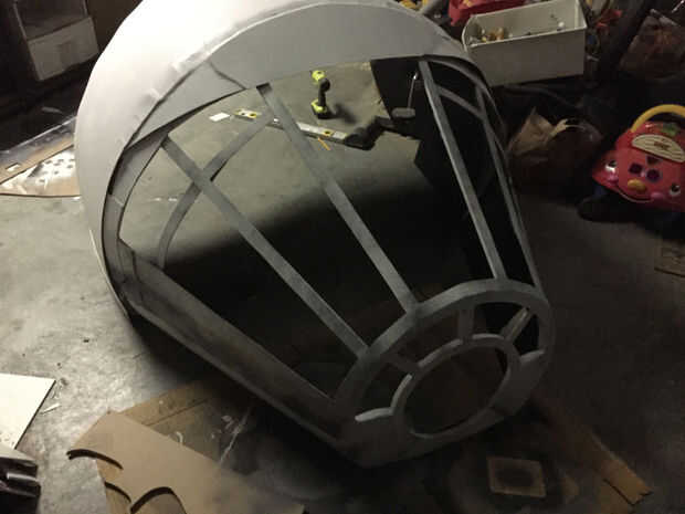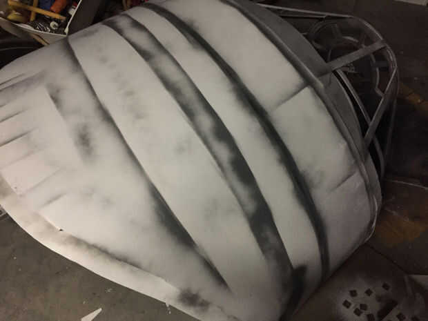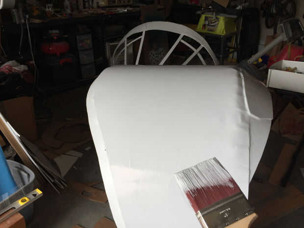 Utilicé una pintura gris clara para el exterior. Y ya que no pude encontrar un rodillo, un cepillo. Después de hacer un trabajo bastante horrible pintando el exterior, me ha tocado el interior donde había goteado la pintura. Estaba quedando sin tiempo, y sentía la presión de hacer las cosas hasta.