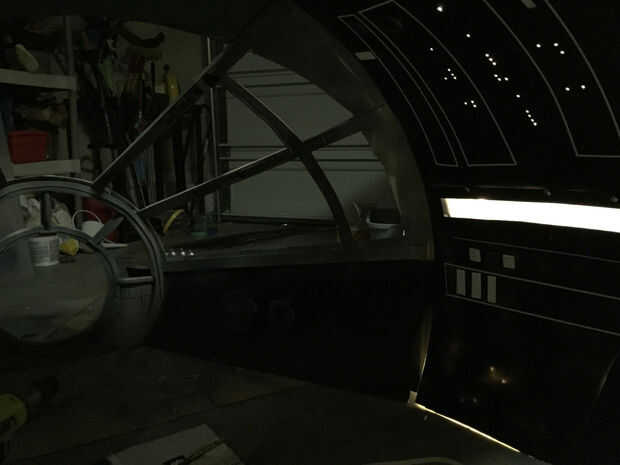 Como el tablero de mandos, he utilizado a rayas al detalle el interior y para completar el proyecto, simplemente taladré orificios a través de la cáscara interior para que la luz brille a través.