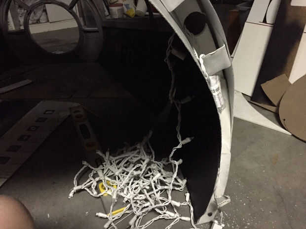 Para finalizar el proyecto, he añadido algunas greebles adicionales al interior. Yo también funcionó una cadena de Navidad LED luces entre la cáscara interior y exterior.