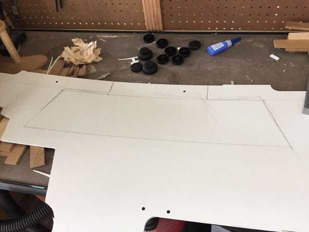 Con mi corte de caja, corte de la forma del tablero de instrumentos superior e inferior de algunos 1/4" PVC Junta que yo tenía por ahí.