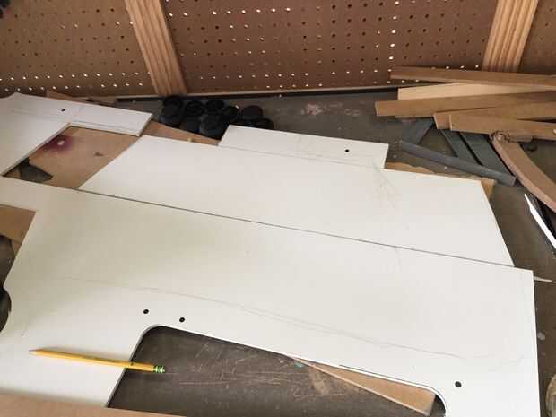 Para obtener un primer idea de cómo trabajarían todas las piezas, este trazado en la superficie del PVC.
