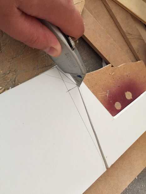 Si nunca has cortado tablero del PVC antes, utilizar el cortador de la caja para hacer un corte poco profundo-pero-precisa. Luego, aplique más presión en los siguientes pasos hasta que hayas cortado a través de la Junta. O, si eres más afortunado que yo, sólo tiene que utilizar su bansaw.