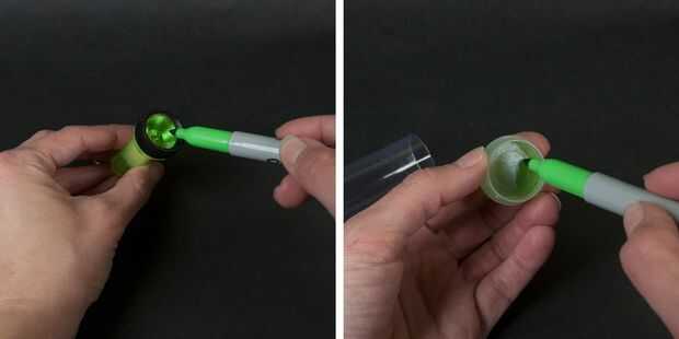 Utilice un marcador permanente para la parte superior de cada mini linterna de color. Color rojo la parte superior de la linterna si es un sith de sable de luz o de color verde si es convertirse en el arma de un jedi. Una vez hecho esto, utilice el marcador para el tapón del tubo de caramelos de color el mismo tono.