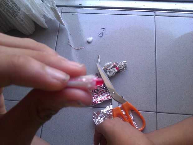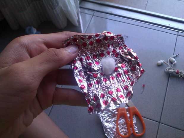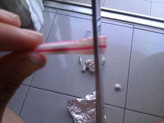 1. Corte el extremo del auricular 2. fijar la cuerda al extremo del auricular 3. Conecte el otro extremo de la cuerda de la paja 4. Envuelva la paja con el papel de aluminio. 5. toque el alambre de cobre alrededor de la lámina de aluminio.