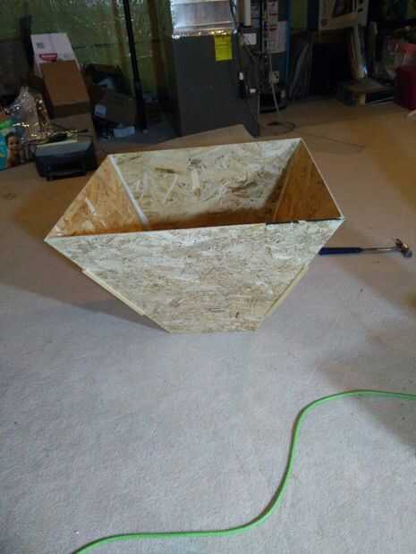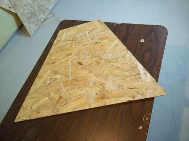 Corte el tablero de contrachapado de 2' x 4' en igual forma trapezoidal, mide 32" por 12" de largo 2' - 0".