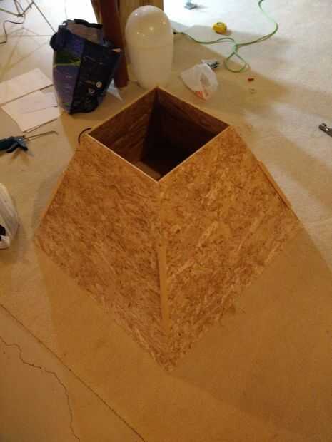 Conectar las placas entre sí uno por uno, usando pegamento de madera al principio y luego una pistola de clavos para asegurar. Recuerde que quieras estar tan niveladas como sea posible para minimizar las interrupciones de flujo de aire. Repasé las costuras exteriores con masilla de silicón para asegurar la hermeticidad del aire.