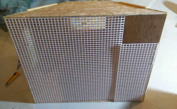 Fije la pantalla aproximadamente una pulgada detrás de la malla de cajón del huevo. Dobla la pantalla hacia atrás y utiliza la pistola de grapas para sujetar y luego utiliza masilla de silicón para sellar y asegurar la pantalla - recordar intentar reducir al mínimo cualquier objetos salientes o superficies rugosas.