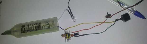 Cuando las puntas de las dos sondas tocan unos con otros (o a través de un material conductivo, como un cable o un circuito) se cierra el circuito y enciende el LED y el zumbador vibra con un tono agradable.
