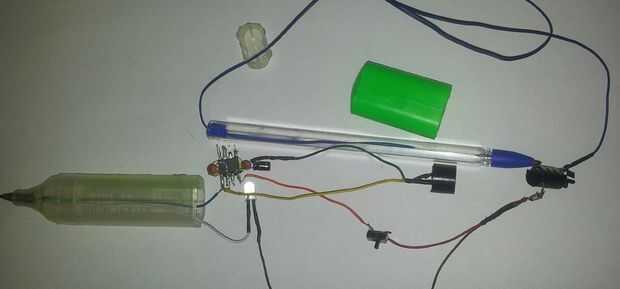 -El (+) pierna del LED y el pin 4 de la 555 (mediante el interruptor on/off) al polo positivo de la batería.