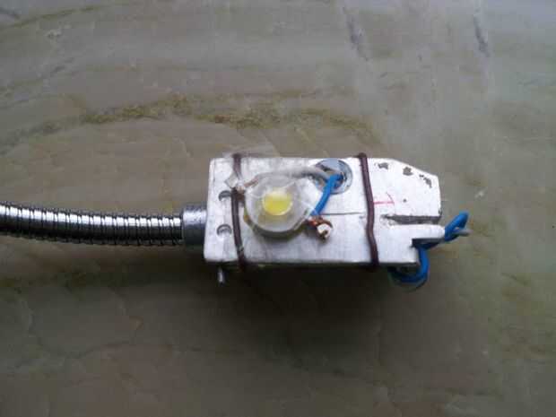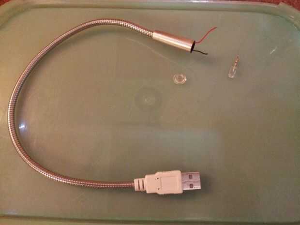6) de la soldadura y volver a montar. Pegué el disipador de calor (con LED en él) con el ordenador portátil existente cono de luz. Los cables simplemente se ocultaron dentro del cono. Mi disipador tiene apenas caliente con 2 horas de funcionamiento como el LED es de puntaje alto.