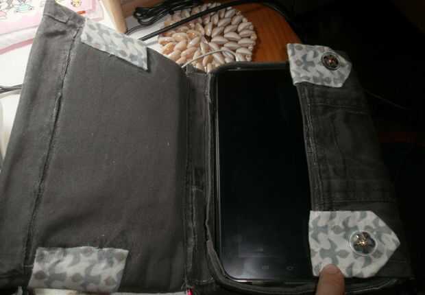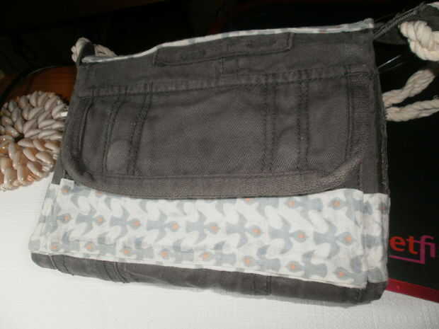 -Pegué a alguna tela en ambos lados de la bolsa un poco de interés visual. Si la tela parece familiar, es porque es de anotIher uno de mi instructables.