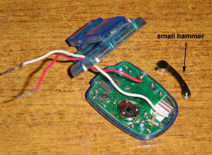 ¿Cómo funciona el padometer? Cada vez que tu cuerpo brinca, un martillo de metal dentro de podómetro saltos una vez y toque un punto (como un conmutador de salto), enviar un pulso eléctrico a contador, aparecerá en pantalla figura "1". Sacar el martillo de metal, llevar 2 hilos hacia fuera del salto de interruptor para el interruptor de láminas.