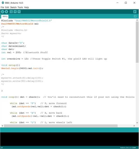 Aquí está el código de Arduino. Antes de subir el código / programa para la placa Arduino Uno, asegúrese de instalar la biblioteca de controlador de Motor de Pololu. Además, no olvide desconectar las líneas de TX-RX del módulo Bluetooth de Arduino. Esto se hace para evitar que el módulo Bluetooth interfieran con el Arduino durante el proceso de programación.