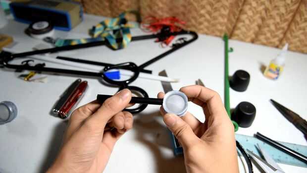 Otra vez, hice un rodillo set, esta vez por la parte exterior (cabeza de BB8). Hice un delta / sistema de rodillo triangular. Por otra parte, he usado desodorantes roll-on para los rodillos de improvisados y luego utilicé una varilla de plástico de peso ligero para conectar tres rodillos juntos. El eje fue tomado de un segmento de plástico de un gancho de ropa.