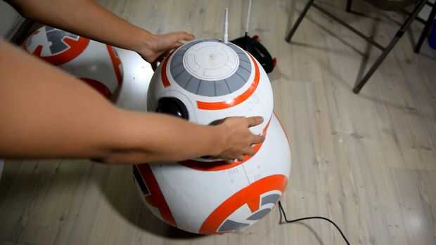 Instale la mitad del cuerpo de BB8 (sobre el mecanismo interno) y luego lanzar sus imanes donde el imán se encuentra del otro lado. Que atraen cada uno. TA-daaa! No tienes que tomar medidas para encontrar la posición exacta de la otra los imanes desde el otro extremo. Finalmente, pegamento caliente los imanes al rodillo del Delta y luego caliente pegamento el rodillo de Delta a la cabeza de Stryofoam de BB8.