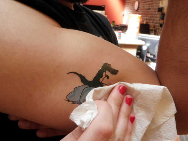 2) dibujar su tatuaje.