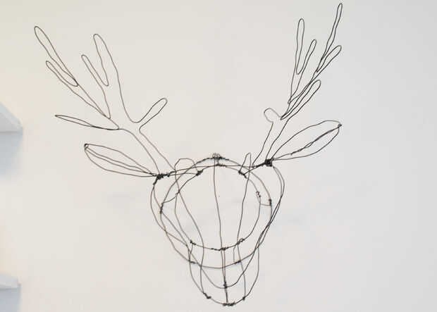 7. a continuación hice los cuernos. Para ello tomé dos piezas muy largas de alambre a la misma longitud. Había doblado por la mitad (al mismo tiempo) y comenzó a formar las "ramas" hacia los lados de cada uno. Luego se tira de ellas aparte y había unido a la parte superior de la cabeza dentro de cada oído. Tuve que trastear con ellos un poco para que se vean algo simétrico.