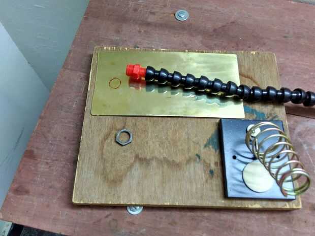 Aquí he hecho soporte y un limpiador de puntas que es lana de acero de la soldadura.