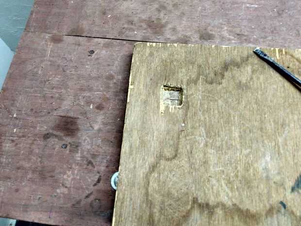 Después de instalar la placa de latón, marca la manguera con la dimensión de la tuerca en la madera contrachapada.