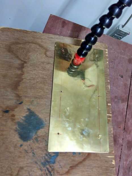Perfore orificios de 6 o bastante seguro placa de latón a la madera contrachapada.