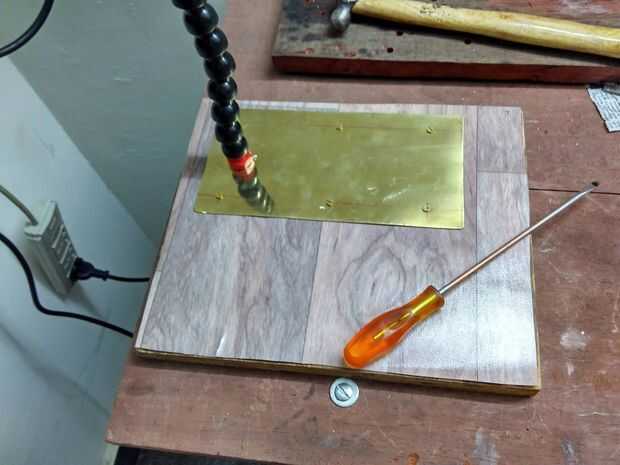 Después de marcar los orificios de la placa de latón no inmediatamente asegure.