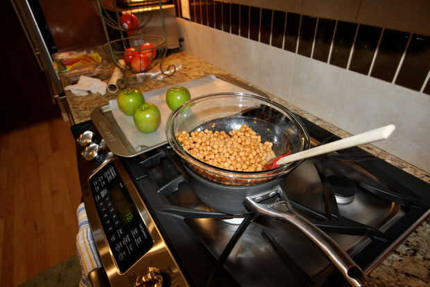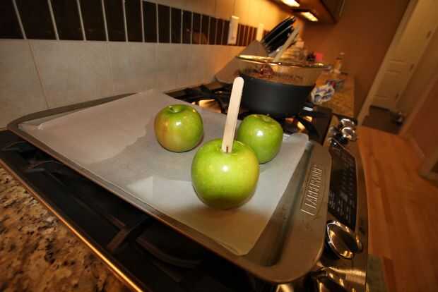 DIY tocino y caramelo cubierto manzanas (2 / 4 paso)