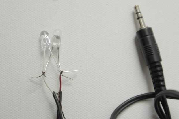 Una vez esto hecho el LED los cables para evitar que los cables del jack de auriculares se suelta de la curva.