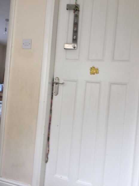 Tire de la cadena al frente de la puerta y dejarlo colgando como se muestra