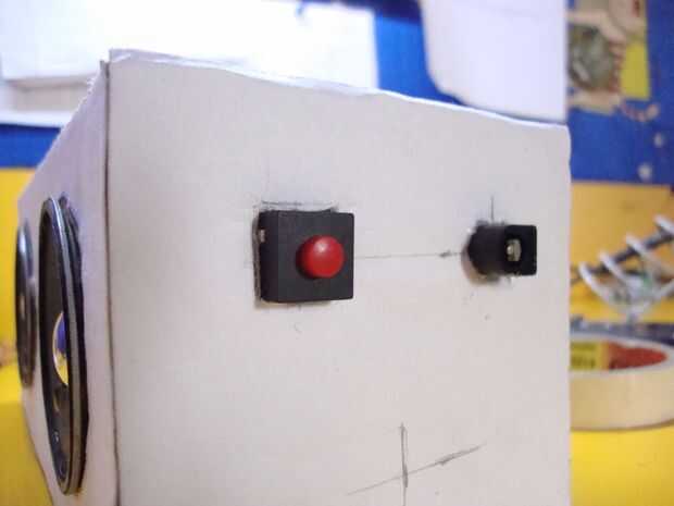 Para conectarlo, primero hacer un agujero para el interruptor y pegarla con pegamento caliente. Luego conecte el primer pin de él al positivo del adaptador y segundo pasador al positivo del circuito amplificador. Consulte el esquema de arriba si no entenderlo.
