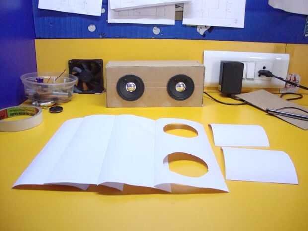 Tomar algunas notas y cortar algunas piezas mide lo mismo que las piezas de cartón que fueron cortadas antes. Puede omitir que abarca la base permanecerá desapercibido. Se pegan todos los papeles a la caja con papel adhesivo.