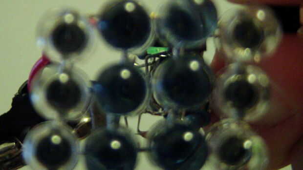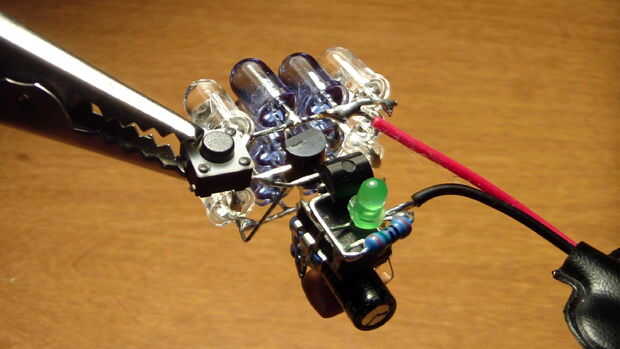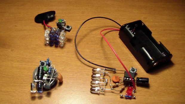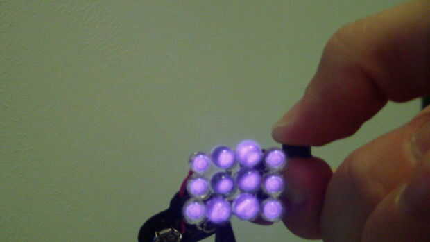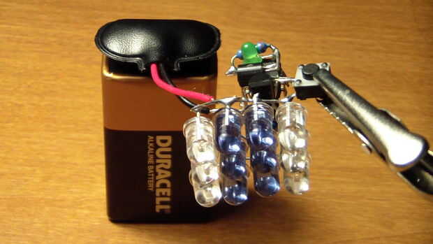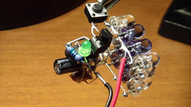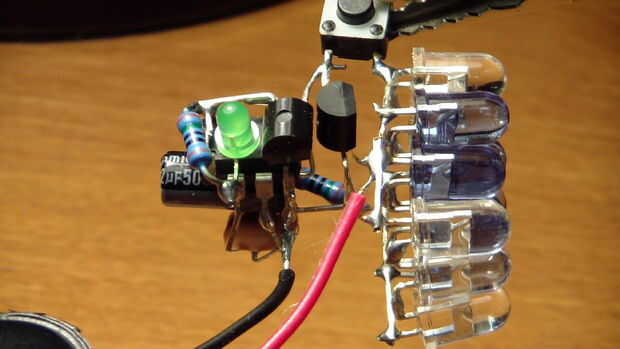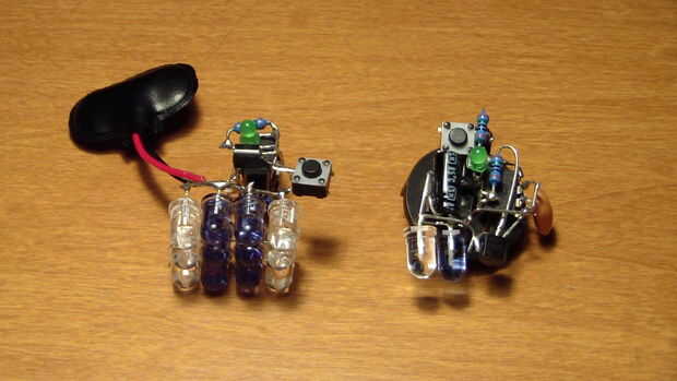 He utilizado un ATtiny 85v como los "cerebros", programado con código original de Adafruit. Se ejecuta en una batería de 9v con un regulador de 5v para alimentar el microcontrolador. Del arsenal del LED tiene 12 LEDs infrarrojos, y el microcontrolador está conectado a un transistor que puede alimentar la matriz entera. La explosión de LEDs 12 casi cada TV-off código, lo que le permite convertir prácticamente cualquier TV encendido o apagado. Un LED de 3mm verde parpadea entre cada código para mostrar que está trabajando. Cuando la batería se quita es significativamente menor que el original TV-B-Gone, permitiendo fácil ocultar.