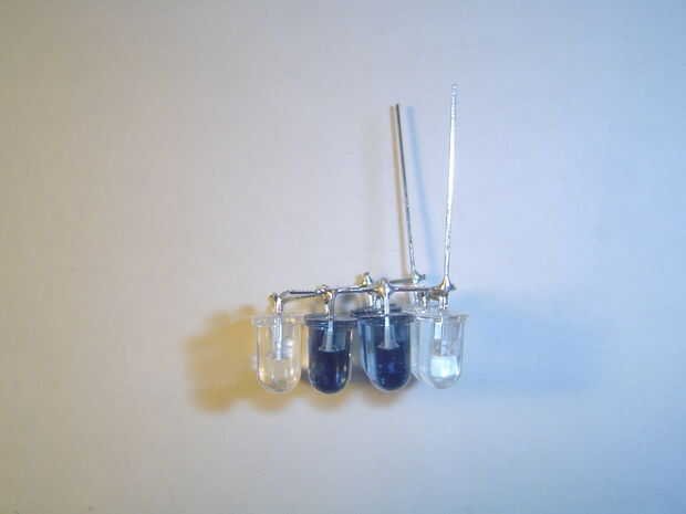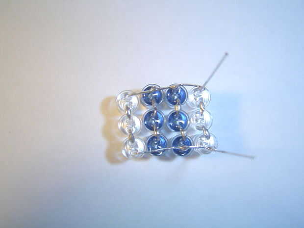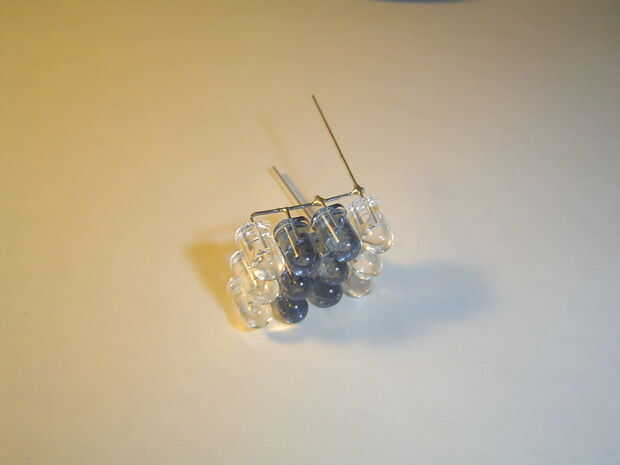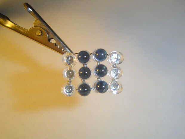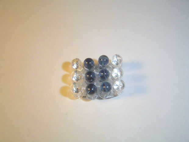 Agrupar las tres mellizas para que todos los negativos son por un lado y los aspectos positivos del otro. Curva en una línea a cada lado y soldarlos juntos. Cortar los dos últimos pines cuando termines; ahora debe tener un bloque de 4 x 3 LEDs.