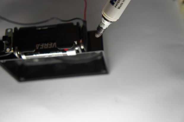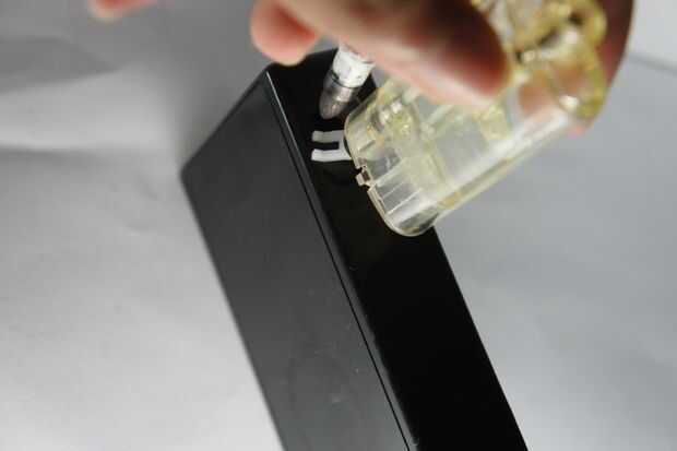 A continuación, tomar su encendedor y marque un orificio para en la parte superior de la caja. (Véase cuadro 8)