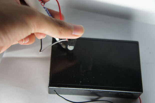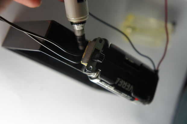 Tome el soporte de la batería y el interruptor, marque los agujeros para los cables por el interruptor y portapilas, (ver fotos 6 y 7)