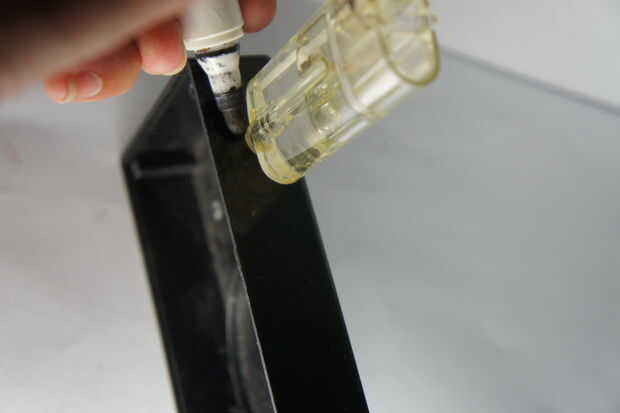 Así que en primer lugar, tomar la parte superior de la mitad de la cámara y coloque en su caja, asegúrese de que su centrado en la caja. Luego tomar el motor y coloque en el centro de la lata. Dont' olvide marcarlo! (Ver imágenes 2 y 3 para referencia)