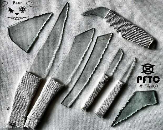 forma del vidrio de un montón de cristales rotos. No es un requisito específico de la forma, que usted puede tomar en la mano es aceptable. Diferentes formas de fragmentos de vidrio se pueden hacer en diferentes cuchillos. Tenga cuidado para que el vidrio no puede herirte.