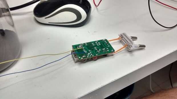 1) abrir el adaptador de CA y la soldadura de dos alambres,