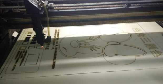 dibujar a Minnie Mouse con madera contrachapada. Entonces mi amigo de seeed ayudarme a cortar la madera contrachapada. Supongo que usted no tiene un láser de corte en casa, usted puede encontrar algunos en el espacio de hacker cerca de usted fácilmente. Si no hay ningún espacio de hacker cerca, puede tratar el suministro de Servicio de corte láser por Seeed.